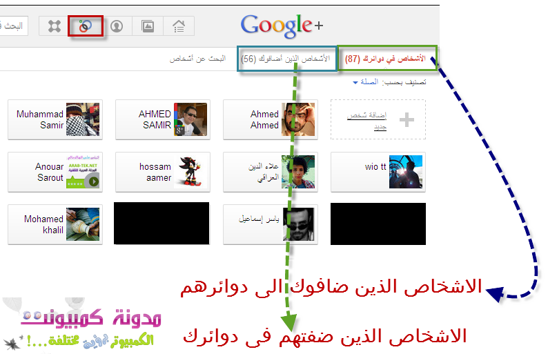 هذه الصورة توضح كيفية أضافة الاشخاص فى دوائرك :